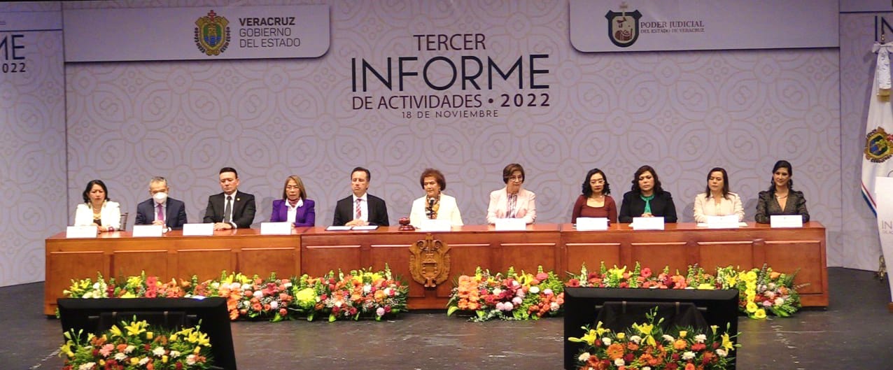 En el Tercer Informe de actividades del Poder Judicial, presentado por la magistrada Isabel Inés Romero, quien asumió el cargo hace dos años, asistieron el gobernador Cuitláhuac García Jiménez y la diputada Mago Corro Mendoza, presidenta de la Mesa Directiva del Congreso local, así como las legisladoras Perla Romero, Illya Escobar, Eusebia Cortés, Cecilia Guevara, Ana Miriam Ferráez, Adriana Esther Martínez, Janix Liliana Castro, Magaly Armenta, Lulú Juárez y Gisela López, además de los diputados locales Sergio Guzmán Ricárdez, Paul Martínez, Rafa Fararoni, Toño Luna, Fernando Arteaga y Luis Arturo Santiago.