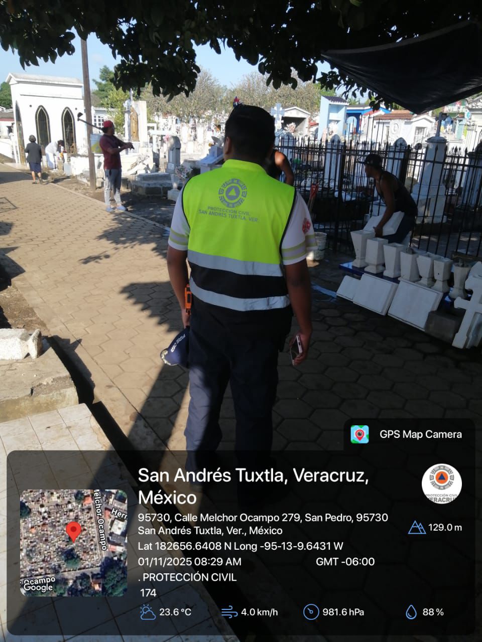 Gracias al trabajo coordinado entre la Policía Municipal, la Dirección de Protección Civil y el área de Limpia Pública, las actividades se desarrollaron en orden y con saldo blanco, registrándose una gran afluencia de visitantes en el panteón municipal.