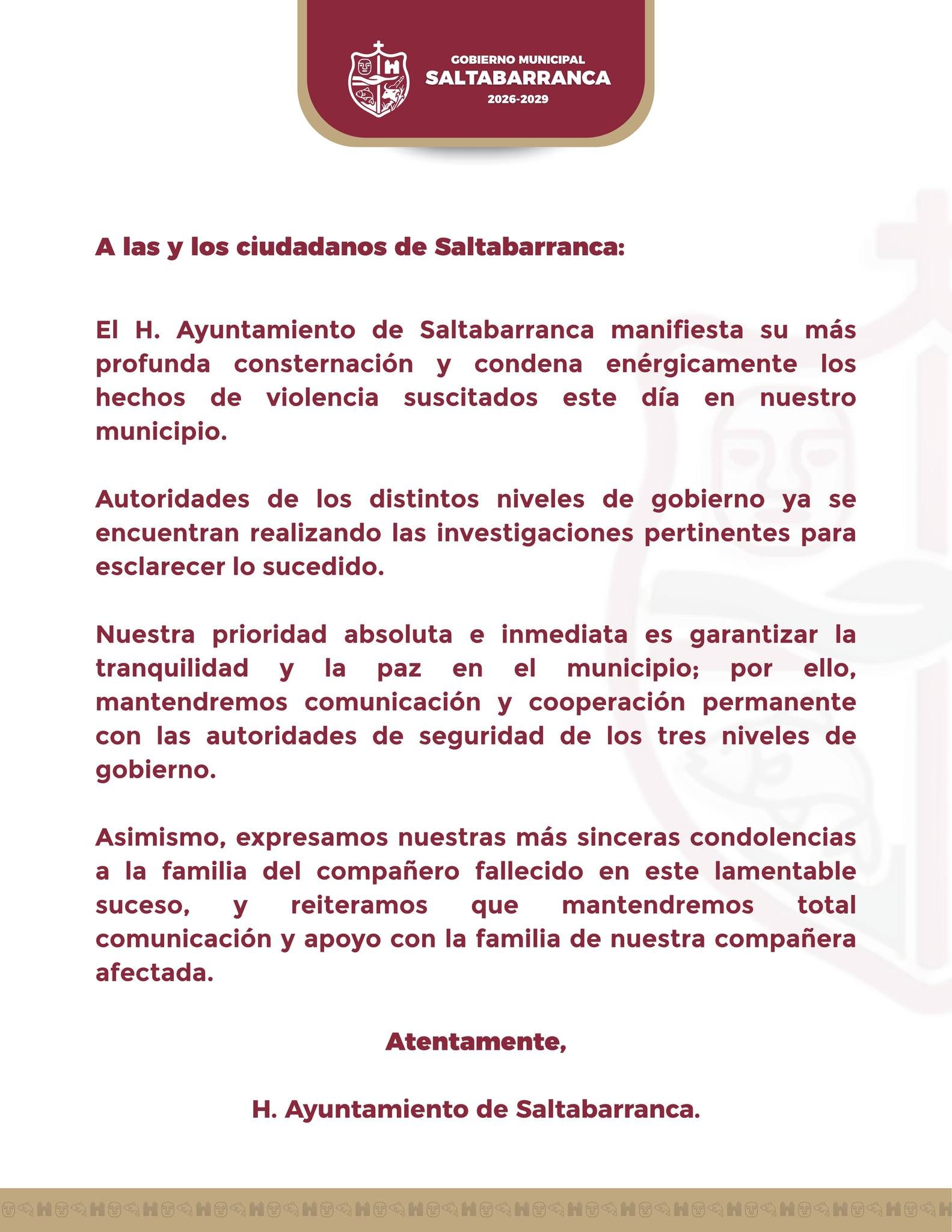 Condena Ayuntamiento de Saltabarranca hechos de violencia