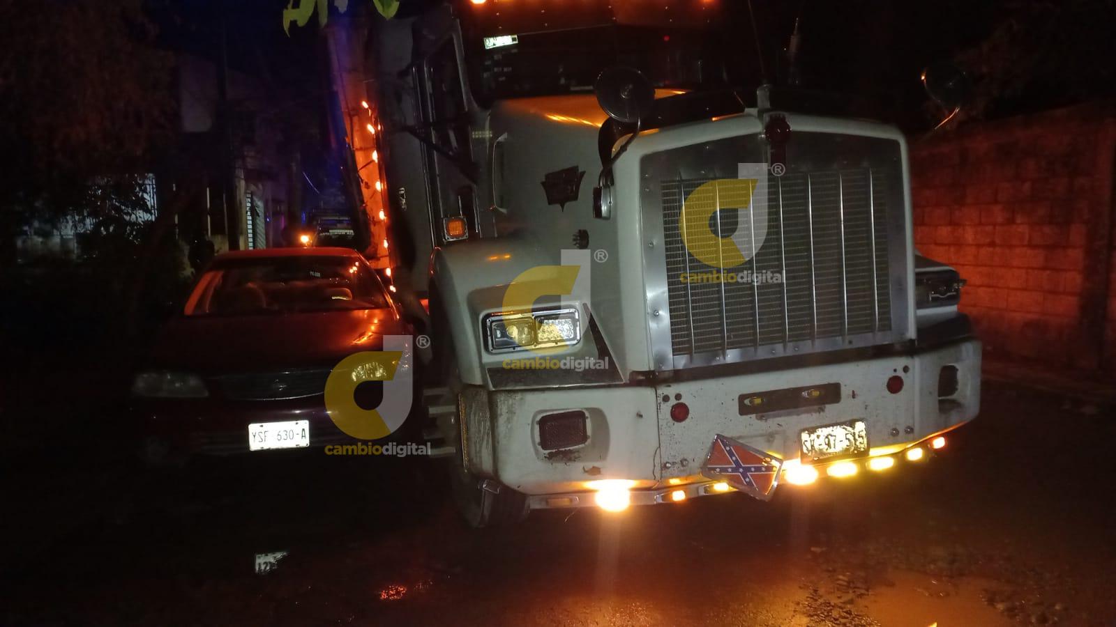 Martínez de la Torre, Ver.- Un irresponsable conductor de una pesada unidad estuvo a punto de ocasionar una verdadera tragedia al ocasionar severos daños materiales y dejar dos personas lesionadas, entre estás un oficial de la Guardia Nacional en su División Caminos en esta citrícola ciudad.