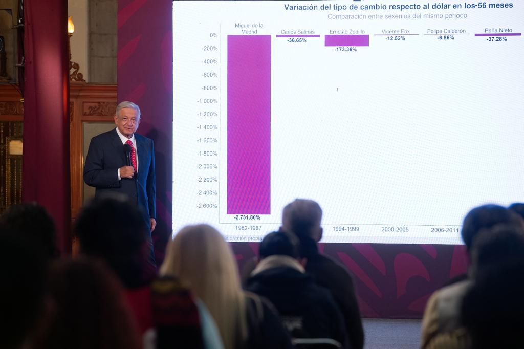 Imagen: MañaneraCiudad de México.- Andrés Manuel López Obrador, presidente de México, celebró que sigue bajando la inflación, ya que repercute mucho en favor de la economía popular, porque el ingreso alcanza para más.