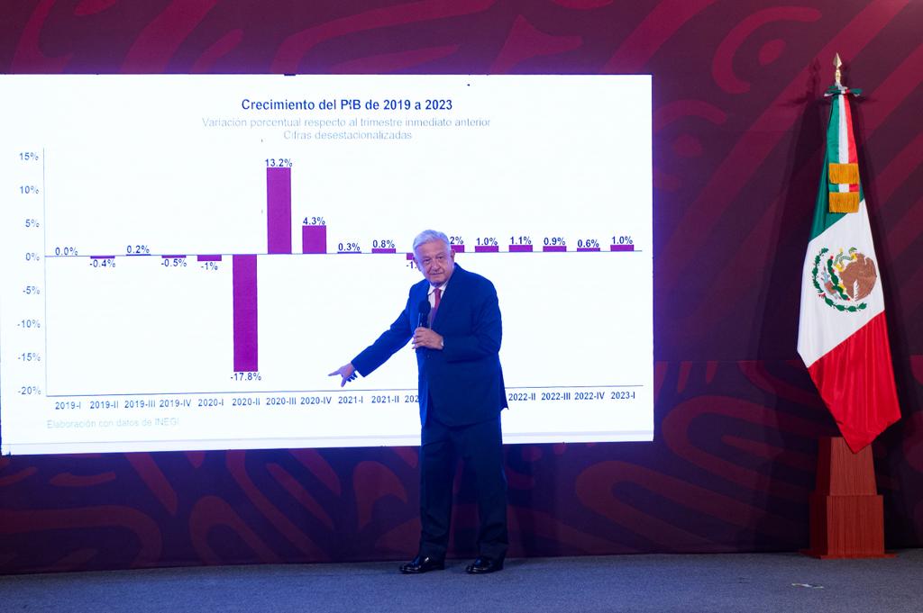 • informó que en lo que va del año la Inversión Extranjera Directa se posiciona en 18 mil 636 millones de dólares, mientras que durante el primer trimestre de 2023 la economía creció 1.0%.