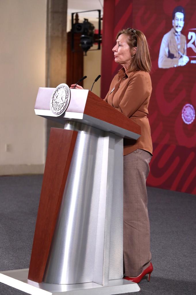 • En su participación en la conferencia, Tatiana Clouthier Carrillo, secretaria de Economía, agradeció a López Obrador por poner sus capacidades al servicio de la patria. “Me paso a la porra a ser una más que trabaja por la patria (…) me voy con la mano tendida”, señaló.