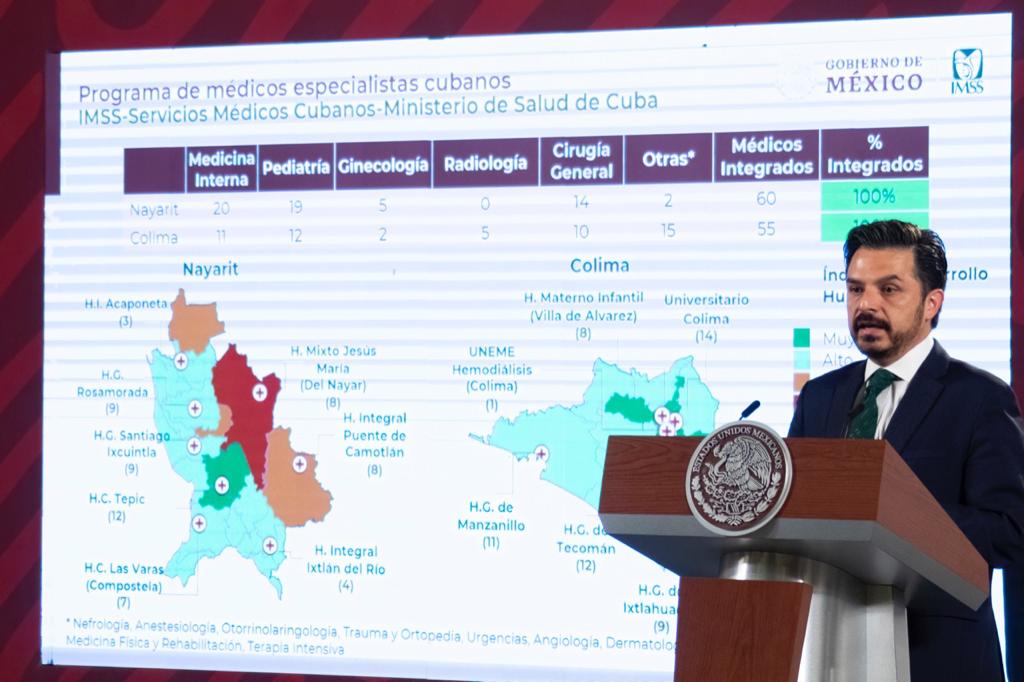 Imagen: MañaneraCiudad de México.- Durante la conferencia matutina, el presidente Andrés Manuel López Obrador dijo que el Sistema IMSS Bienestar funcionará en todo el país en 2023 y brindará atención médica y medicamentos gratuitos, además, informó que éste Sistema ya está operando casi al 100% en Nayarit, Colima y Tlaxcala.