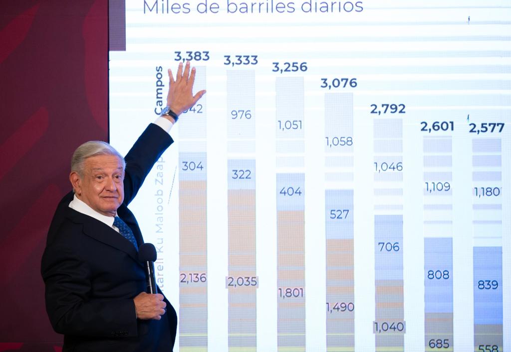 Imagen: MañaneraCiudad de México.- Andrés Manuel López Obrador, presidente de México, señaló que durante 2-3 décadas del siglo pasado el 40% del presupuesto nacional provenía de los ingresos petroleros generados por la producción y extracción que se generaba en los estados del sureste, como Tabasco, de Campeche y de Chiapas.