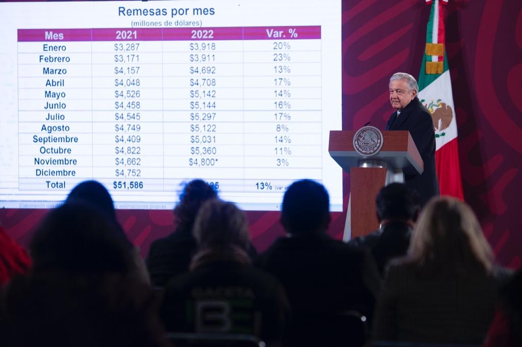 Por su parte, el presidente consideró que en 2022 México estará cerca de los 60 mil millones de dólares por conceptos de remesas.