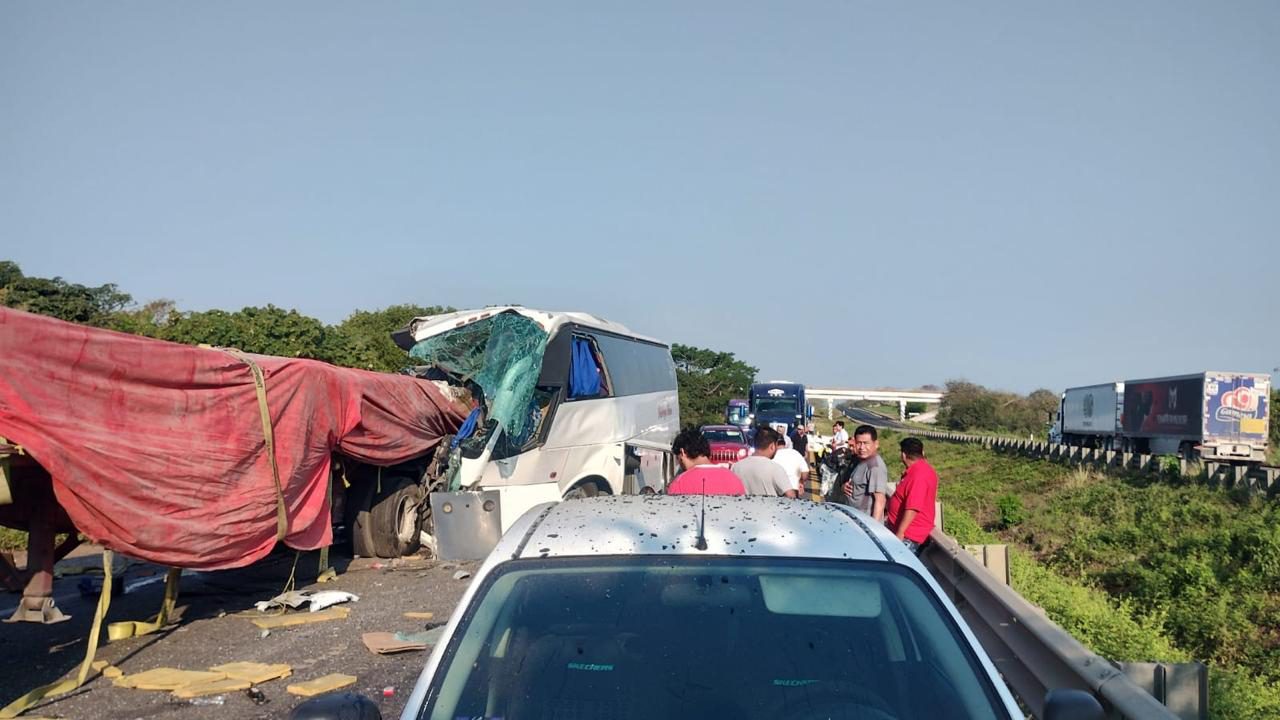 Veracruz.- El choque múltiple registrado este lunes en la autopista 145D en el tramo Cosamaloapan-Isla-Acayucan, a la altura del municipio de Juan Rodrigez Clara, dejó un saldo de cuatro personas muertas y 13 más lesionadas.