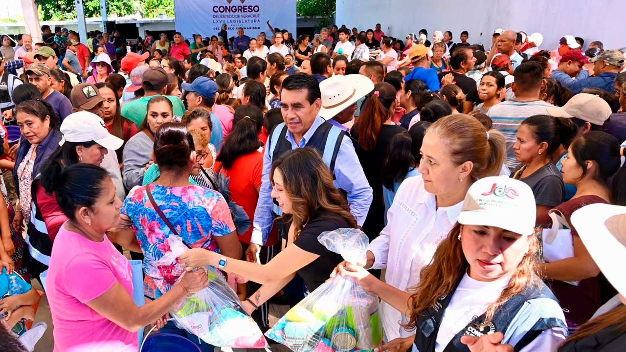 Xalapa, Ver.- Al lado de la presidenta de la Mesa Directiva de la LXVII Legislatura, diputada Naomi Edith Gómez Santos, el presidente de la Junta de Coordinación Política (Jucopo), diputado Esteban Bautista Hernández, encabezó la entrega de apoyos en los municipios de Tempoal, Platón Sánchez, El Higo e Ilamatlán, afectados por la contingencia, e informó que en enero se convocará a las y los munícipes para conocer las necesidades de sus regiones y coadyuvar en la recuperación.