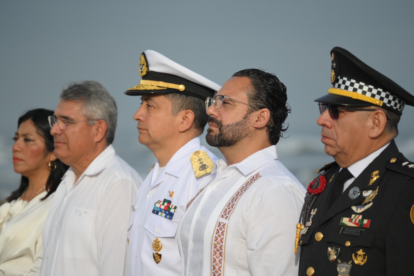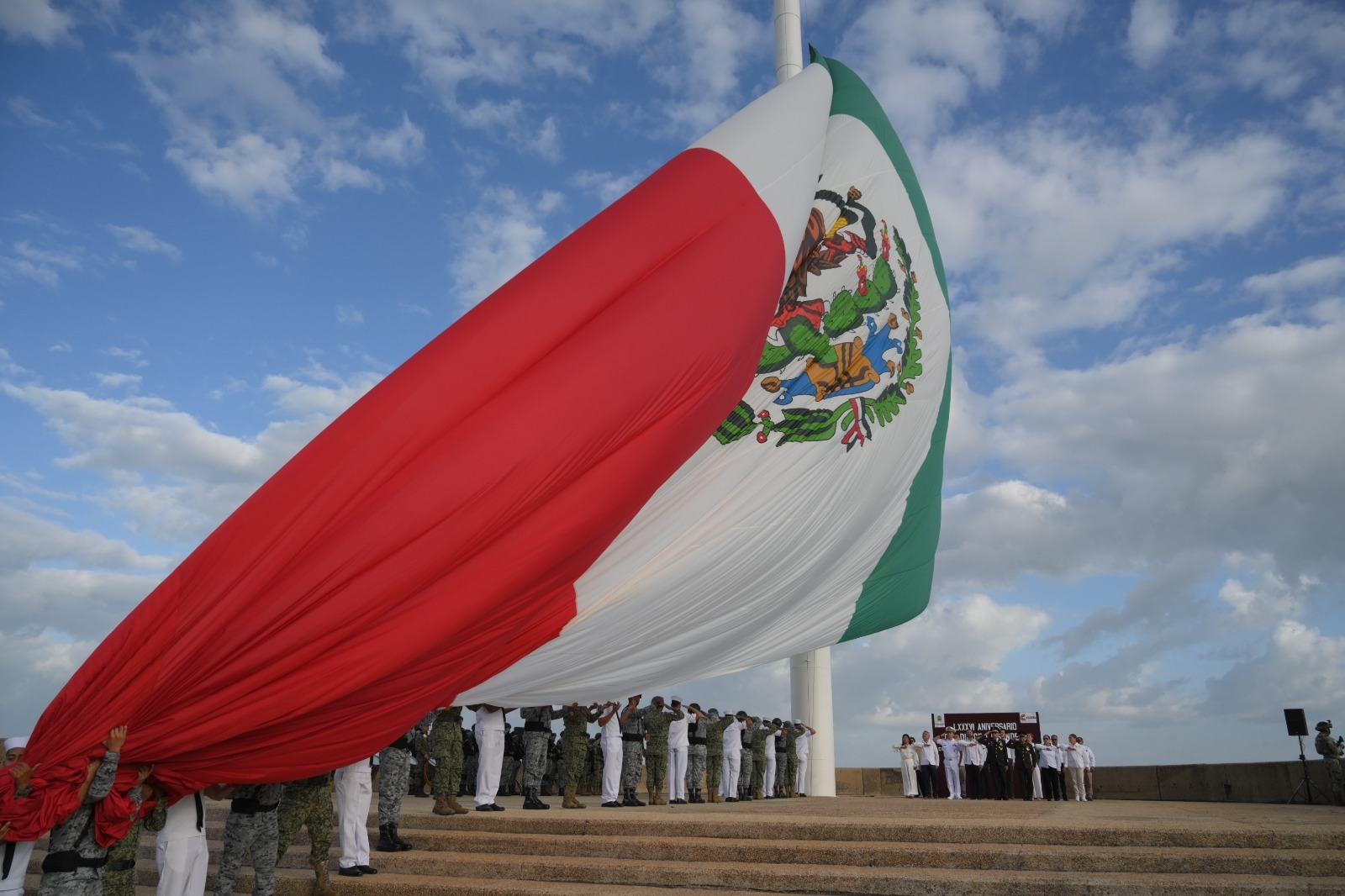 Durante el acto de izamiento se rindieron honores de ordenanza al lábaro patrio y se entonó el Himno Nacional Mexicano, con la participación de la escolta y banda de guerra de la Séptima Zona Naval, así como de la Orquesta de Música Popular del Ayuntamiento.