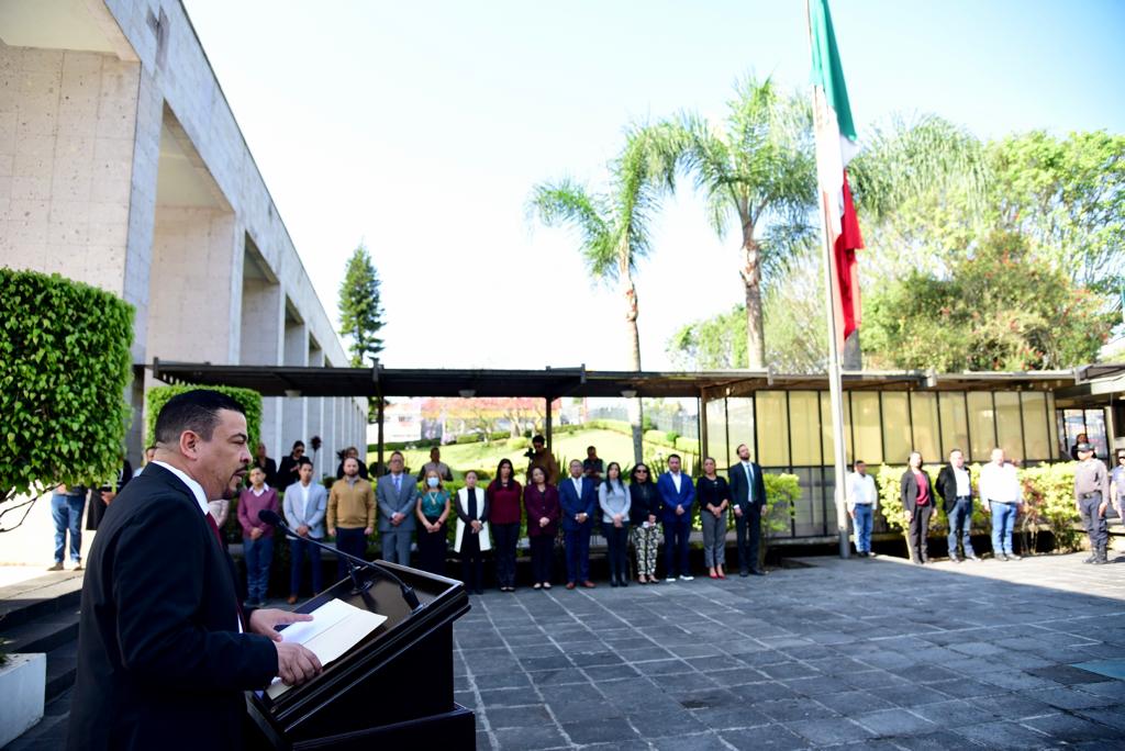 Tras los honores a la Bandera y la entonación del Himno Nacional, el legislador Juan Javier Gómez subrayó que el Benemérito de las Américas hizo de su conducta personal el referente obligado para cada servidor o servidora pública de su tiempo y de la actualidad.
