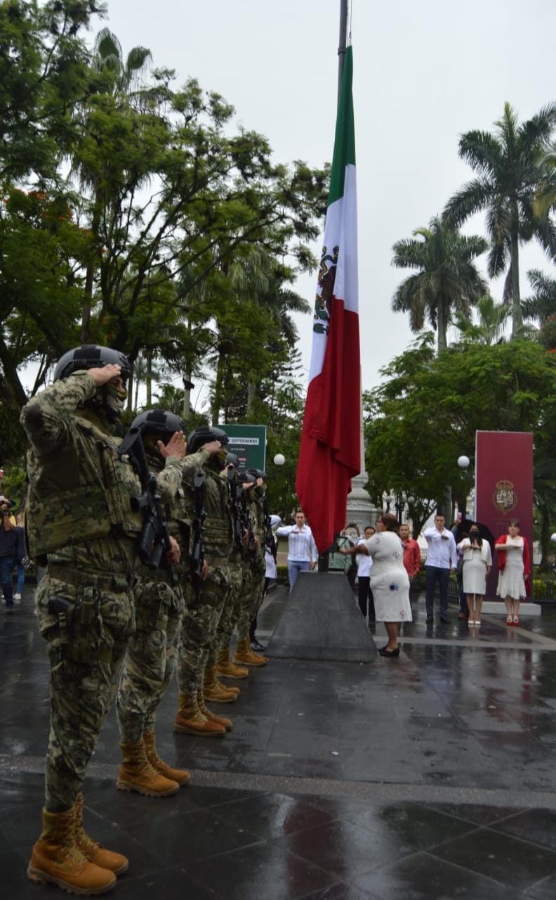 Las notas del glorioso Himno Nacional y el de Veracruz fueron musicalizadas por la Banda Municipal de Música y entonadas por Juan Manuel Cadena Mascorro.