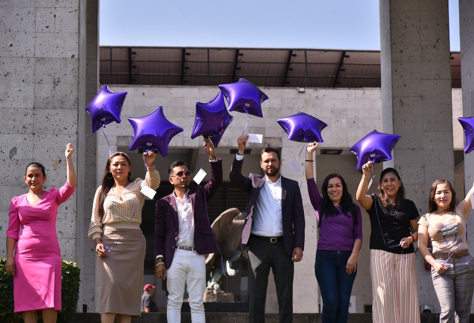 Como parte de este acto, fue colocado un moño morado en la parte superior del edificio sede del Poder Legislativo; las y los participantes portaron un globo del mismo color para simbolizar el trabajo que el Congreso de Veracruz realiza permanentemente para abatir las barreras de desigualdad y discriminación y para la creación de más espacios a las mujeres veracruzanas en los diversos ámbitos de la vida pública estatal.