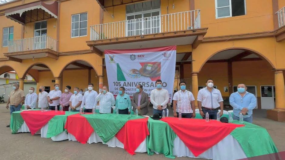 Hueyapan de Ocampo, Ver.- El H. Ayuntamiento de Hueyapan de Ocampo lleva acabo la ceremonia de conmemoración del 105 aniversario de la promulgación de la Carta Magna.