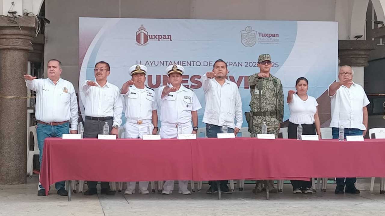Tuxpan, Ver.- En el marco de la conmemoración por el 105 aniversario luctuoso del expresidente Venustiano Carranza, el gobierno de Tuxpan llevó a cabo el lunes cívico en la explanada municipal.