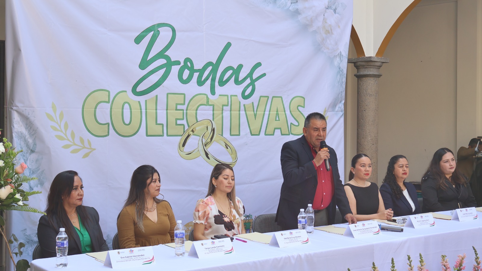 El evento, que se llevó a cabo en el patio central del Palacio de Gobierno, estuvo encabezado por el alcalde, José Antonio Sangabriel Fernández, las integrantes del Cabildo, las directivas del DIF Municipal y por la Oficial del Registro Civil de Banderilla, Isabel Ruíz Cervantes.