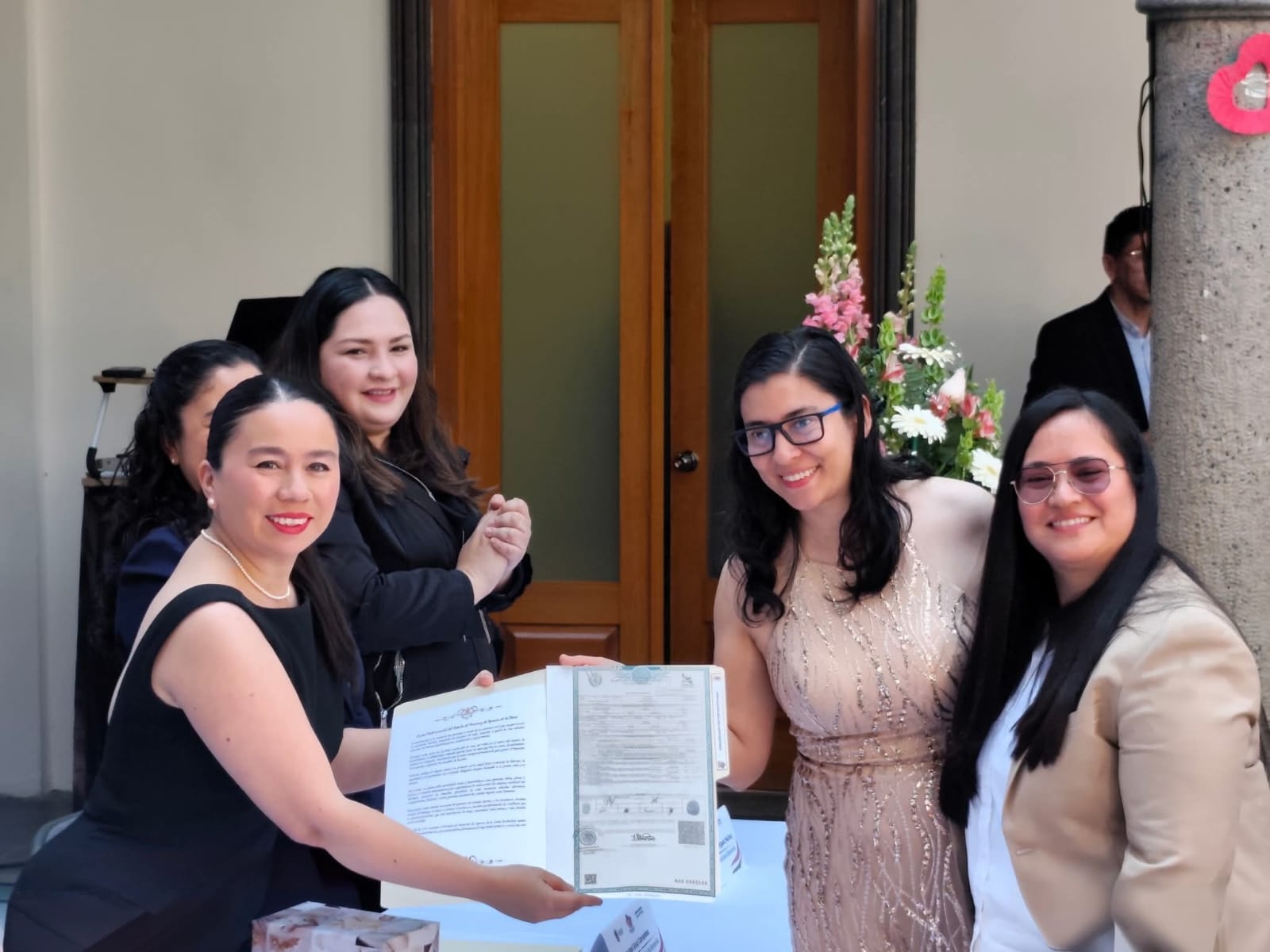 Acompañaron al alcalde, José Antonio de Sangabriel Fernández la oficial del Registro Civil de Banderilla, Isabel Ruíz Cervantes; Sindica, Estefanía Cruz Morales; Regidora Primera, Miriam Lagunes Marín y Regidora Segunda, Tanya Landa Carmona, así como la presidenta y la directora del DIF Municipal, Allyson Rodríguez Núñez y Eva Gabriel Hernández, respectivamente.