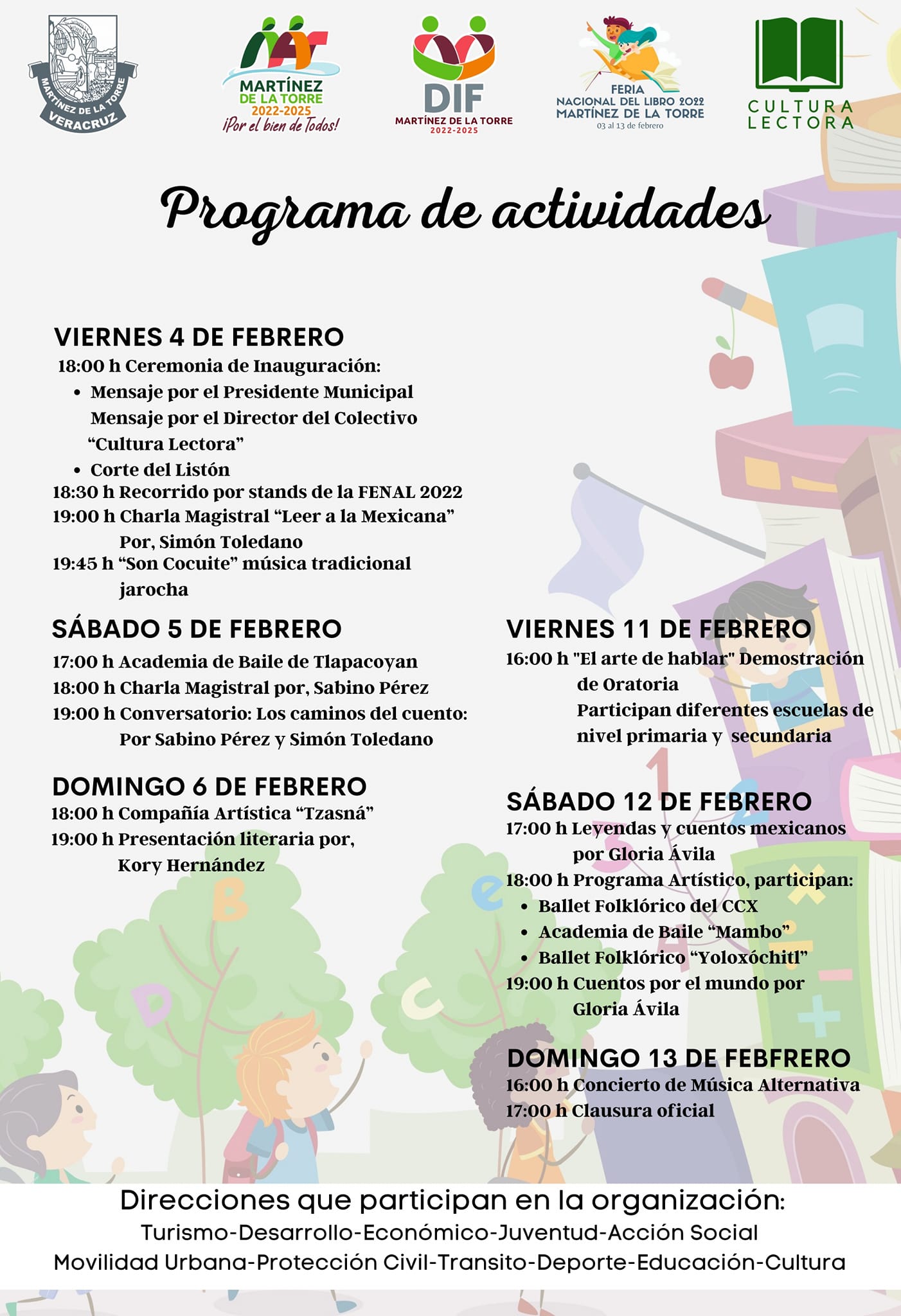 Martínez de la Torre, Ver.- El Ayuntamiento de Martínez de la Torre, que encabeza el alcalde Rodrigo Calderón Salas, extiende una amplia invitación a toda la ciudadanía para participar en la Feria Nacional Del Libro 2022 Martínez de la Torre, que se realizará del 3 al 13 de febrero.