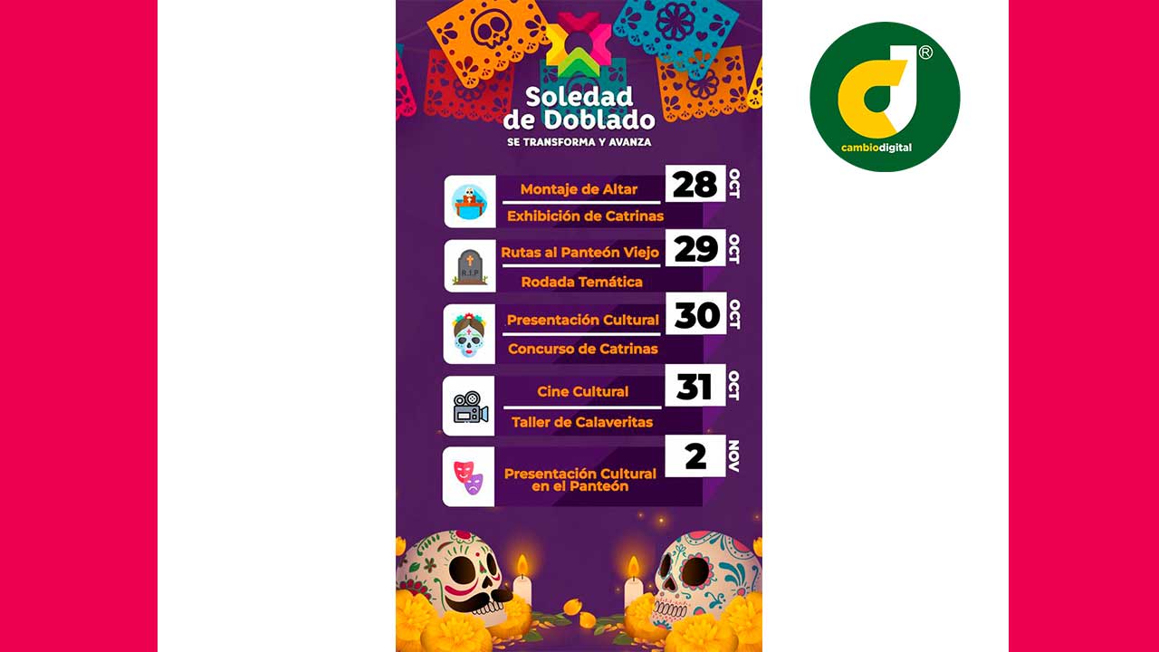 Soledad de Doblado, Ver.- El ayuntamiento de Soledad de Doblado que encabeza Arantxa Zamitiz Sosa invita al Taller de Catrinas este jueves 13 y viernes 14 de octubre en la explanada de la estación a partir de las 17:00 horas hasta la 19:00 horas.