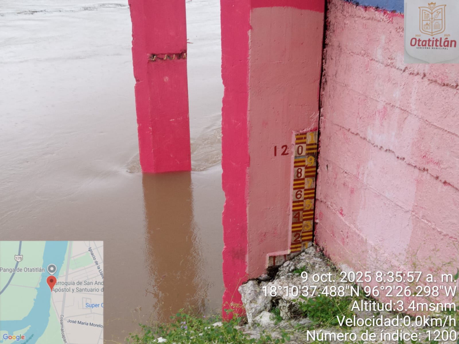 Y de que están creciendo las aguas en el Papaloapan, es evidente con la medición frente a la cabecera de Otatitlán, de 9.0 a 10.7 metros de anoche a esta mañana, y las aguas siguen escurriendo, al momento sólo con riesgo de desbordes.