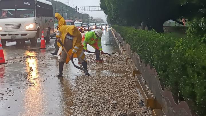 La carretera federal 180 Costera del Golfo que sufrió afectaciones en varios puntos es reparada; se habilitaron pasos temporales.
