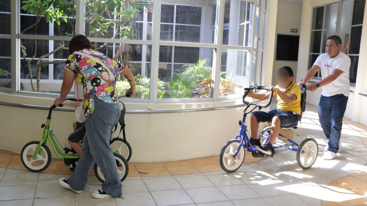 “Estos ejercicios en triciclos especiales permiten adquirir mejor coordinación y equilibrio, lo que da mayor estabilidad al comenzar a caminar e incluso al conducir”, señaló la terapeuta.