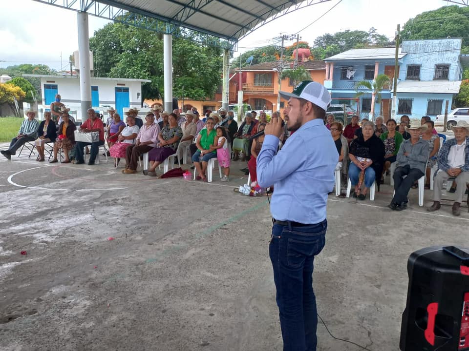 Juchique de Ferrer, Ver.- El presidente municipal Cruz Cuevas Hernández, asistió al convivio con adultos mayores en la comunidad de Laguna de Farfán por motivo del Día del Abuelo.