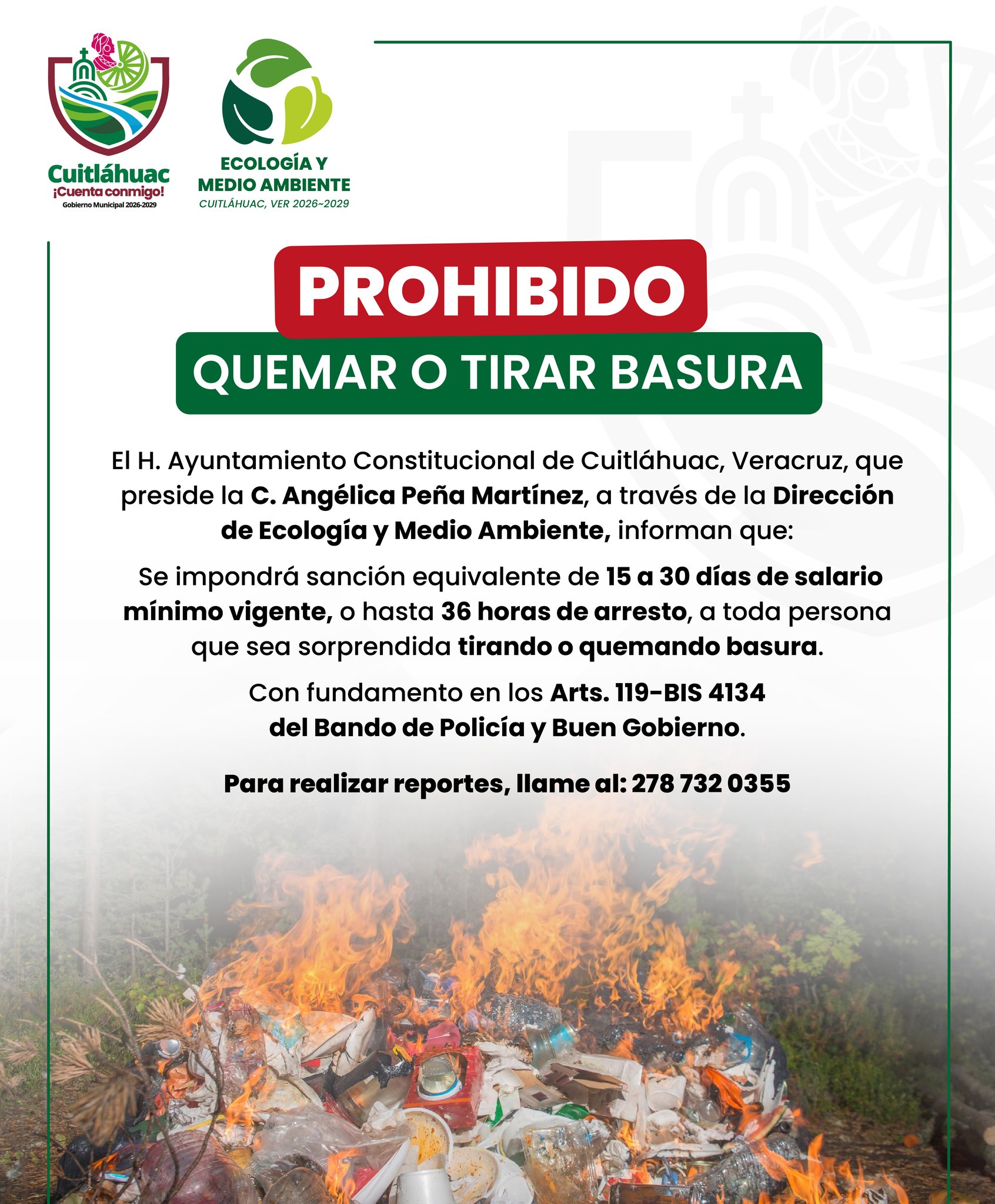 ¡Cuidemos Cuitláhuac! Tirar o quemar basura tendrá sanción