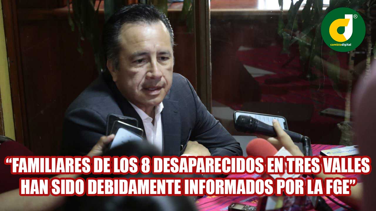 Xalapa, Ver.- Entrevistado en la capital del estado el gobernador de Veracruz, Cuitláhuac García Jiménez, dio a conocer que hay avances en la investigación por las personas desaparecidas el pasado 26 de agosto en el municipio de Tres Valles.