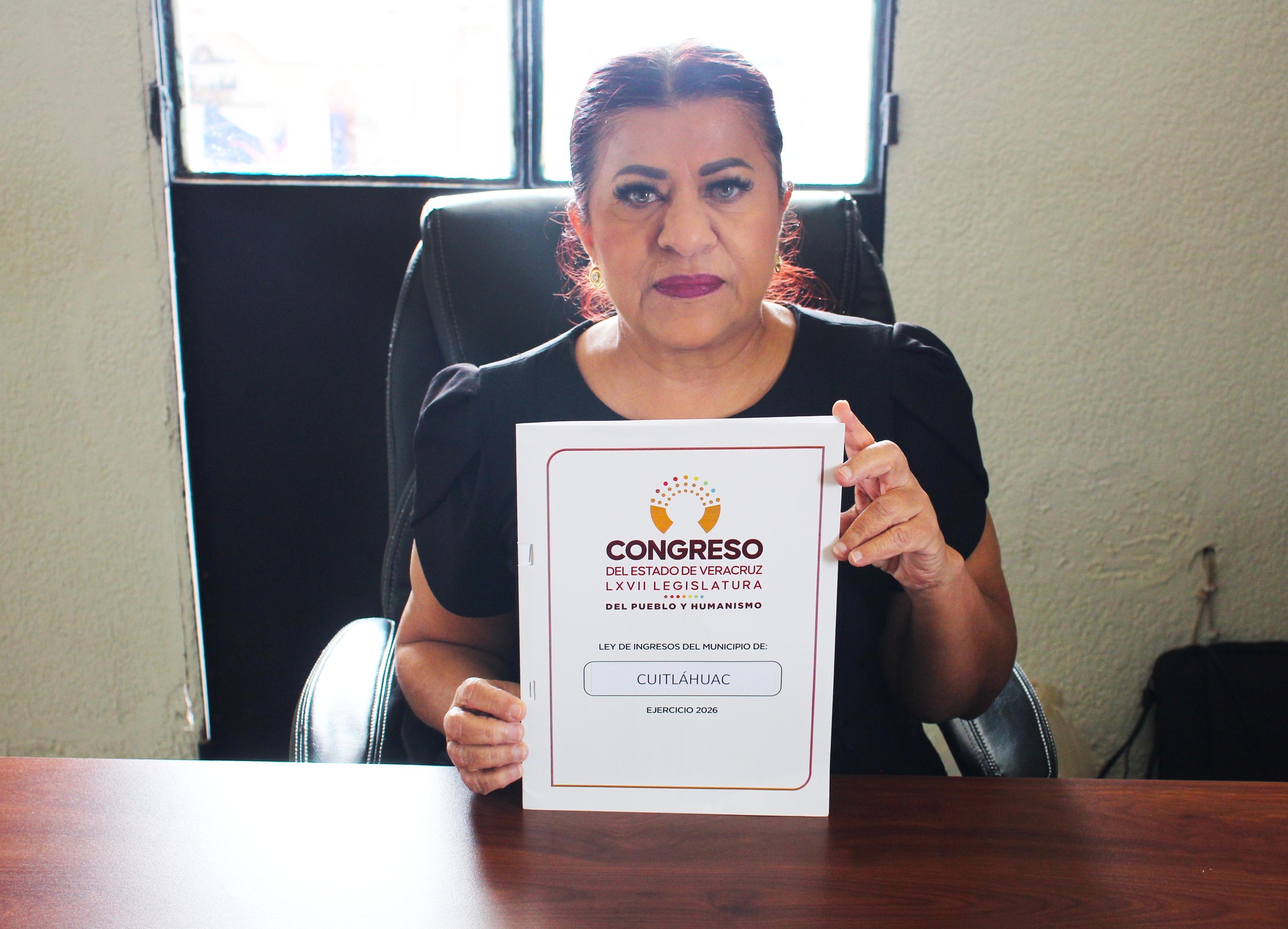 Cuitláhuac, Ver.- La alcaldesa de Cuitláhuac, Angélica Peña Martínez, recibió por parte del Honorable Congreso del Estado de Veracruz, la Ley de Ingresos correspondiente al Ejercicio Fiscal 2026.