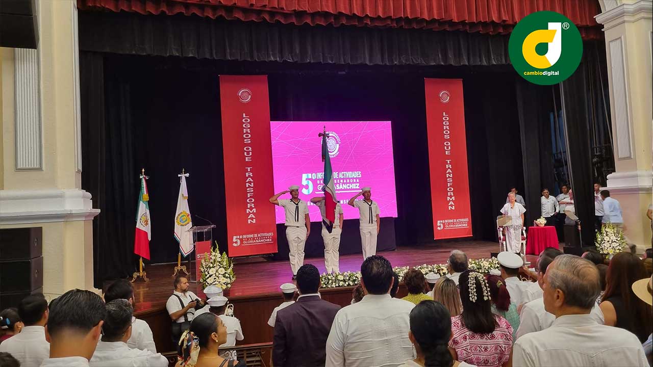 Veracruz, Ver.- Por el Quinto Informe de Labores de la senadora Gloria Sánchez Hernández, el gobernador de Veracruz, Cuitláhuac García Jiménez, reconoció y agradeció su apoyo por sacar adelante las iniciativas promovidas por el presidente Andrés Manuel López Obrador y que hoy hace realidad un México más justo y equitativo al atender primero a los pobres.