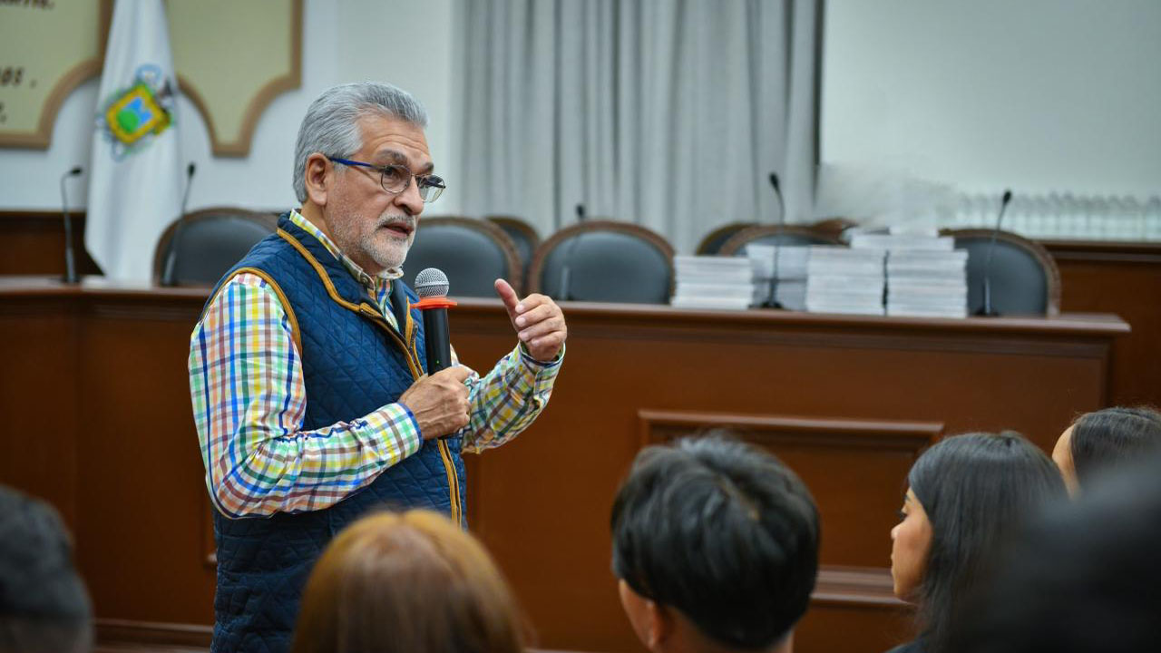 Xalapa, Ver.- El alcalde Alberto Islas Reyes recibió en la Sala de Cabildo a las y los integrantes del Colegio Bilingüe Santa Fe, pertenecientes a la Latin Band BSF Internacional, originarios de Quesada, Jutiapa, Guatemala, quienes participarán como invitados especiales en el Desfile de Catrinas Xalapa 2025, que se realizará este sábado 25 de octubre.