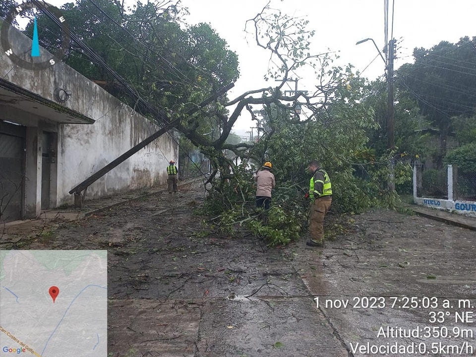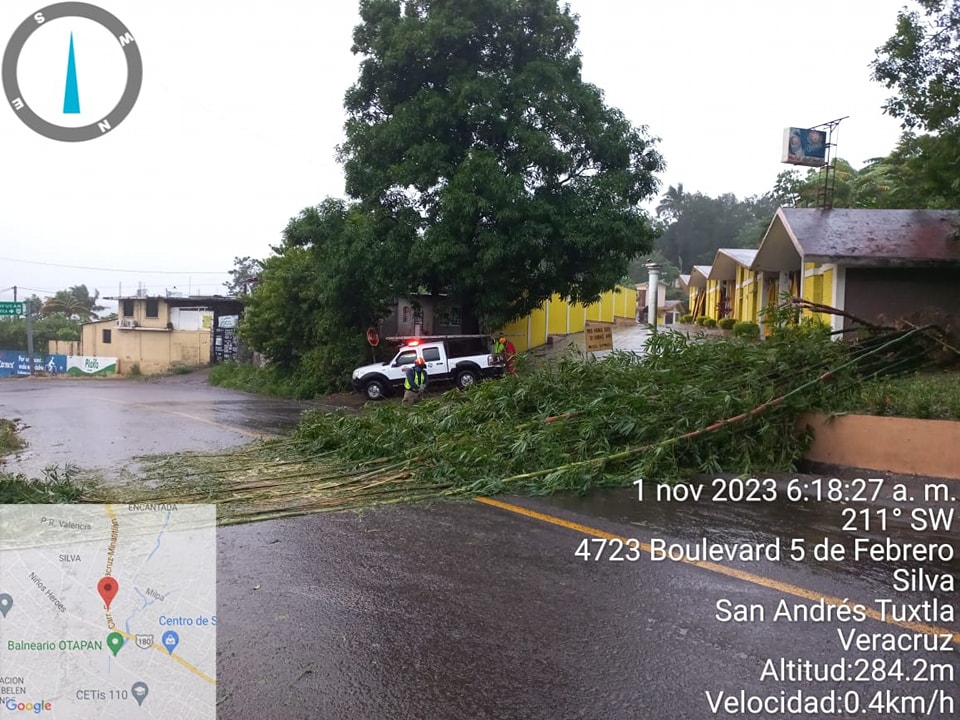 San Andrés Tuxtla, Ver.- Manteniendo el compromiso de cuidar de la ciudadanía sanandrescana y siguiendo la instrucción de la Dra. María Elena Solana Calzada, personal de Protección Civil y Bomberos dirigidos por el ingeniero Josué Ceja Espejo, han permanecido trabajando y dando seguimiento a los reportes ciudadanos ante las afectaciones que ha venido provocando el frente frío número 8.