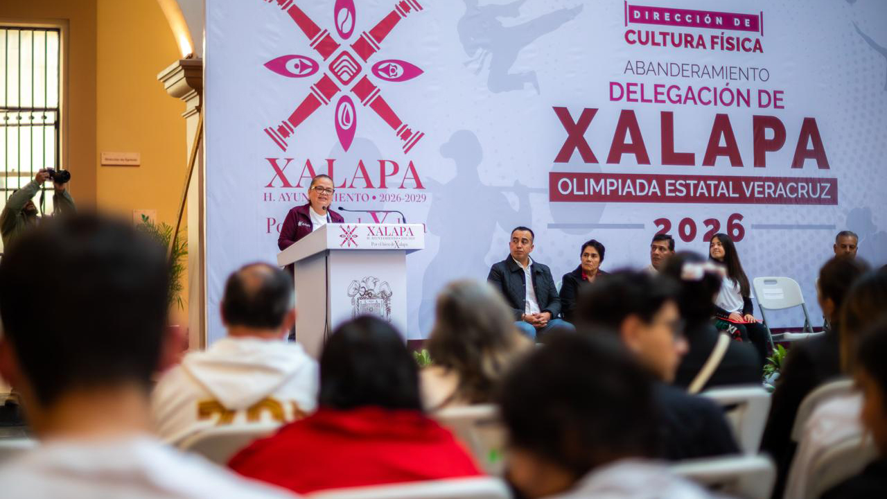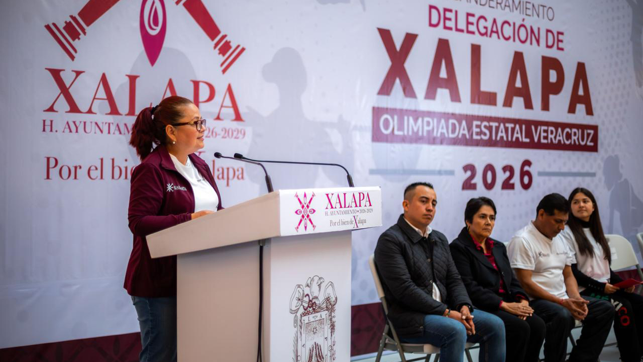 Xalapa, Ver., 11 de febrero de 2026.- “En el Gobierno Municipal creemos que el deporte es una herramienta fundamental para transformar a nuestra sociedad, ya que aleja de la violencia y genera proyectos de vida positivos”, destacó la Alcaldesa, Lic. Daniela Griego Ceballos, durante la ceremonia de abanderamiento de la Delegación de Xalapa que participará en la Olimpiada Estatal Veracruz 2026.