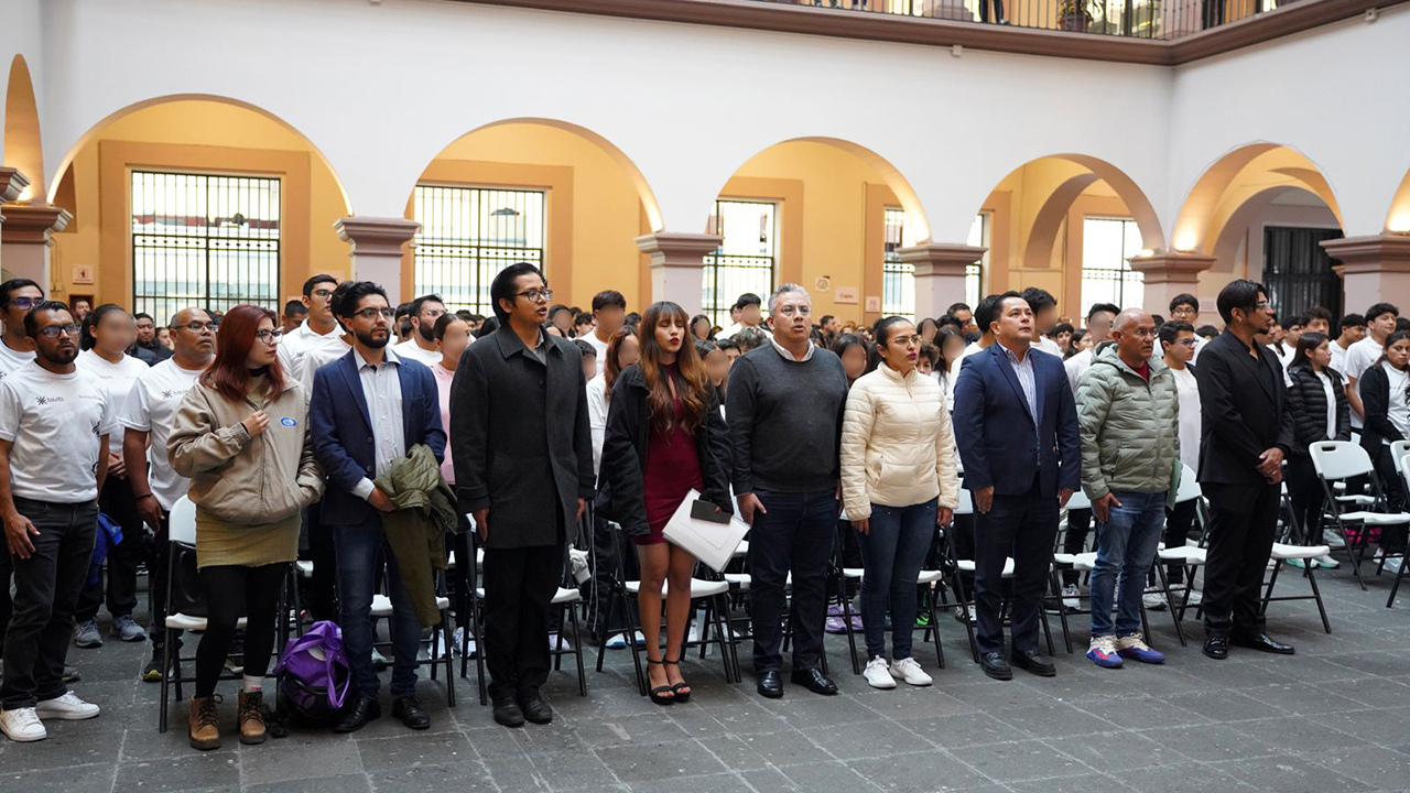 En el acto también estuvieron presentes el entrenador de levantamiento de pesas Luis Tapia Arizmendi, titulares de las Direcciones Municipales, así como estudiantes de la Escuela Secundaria Experimental, quienes realizaron los honores a la bandera.