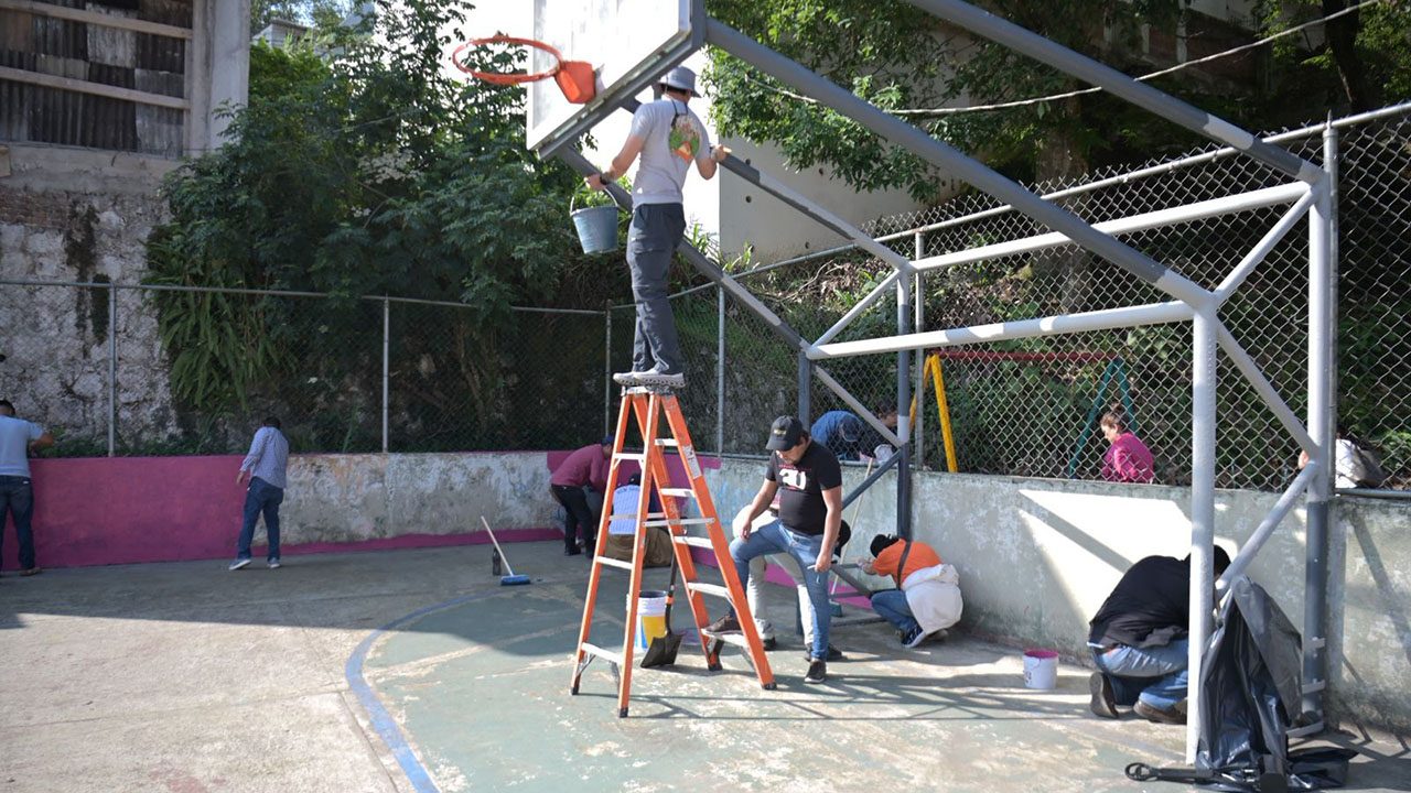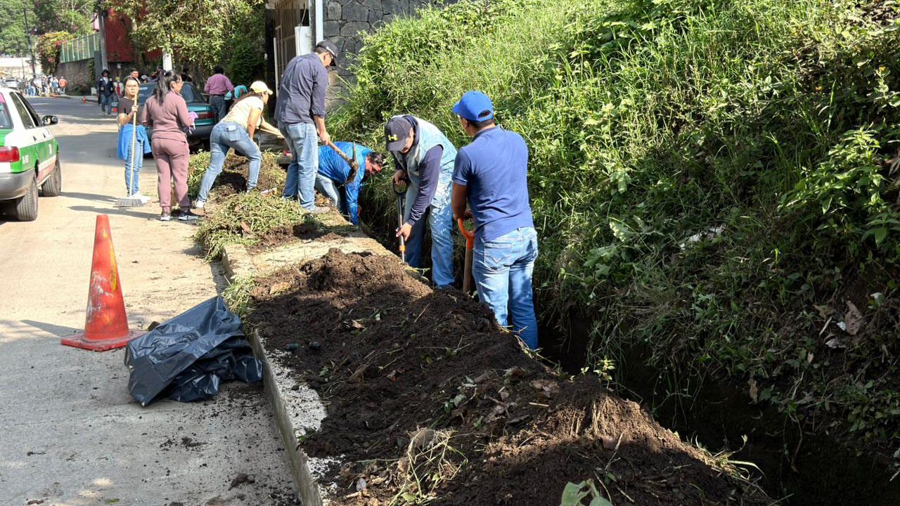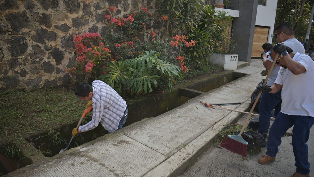 Como parte de la jornada, se llevó a cabo la limpieza de tragatormentas, desazolve de alcantarillas, aplicación de pintura en guarniciones.