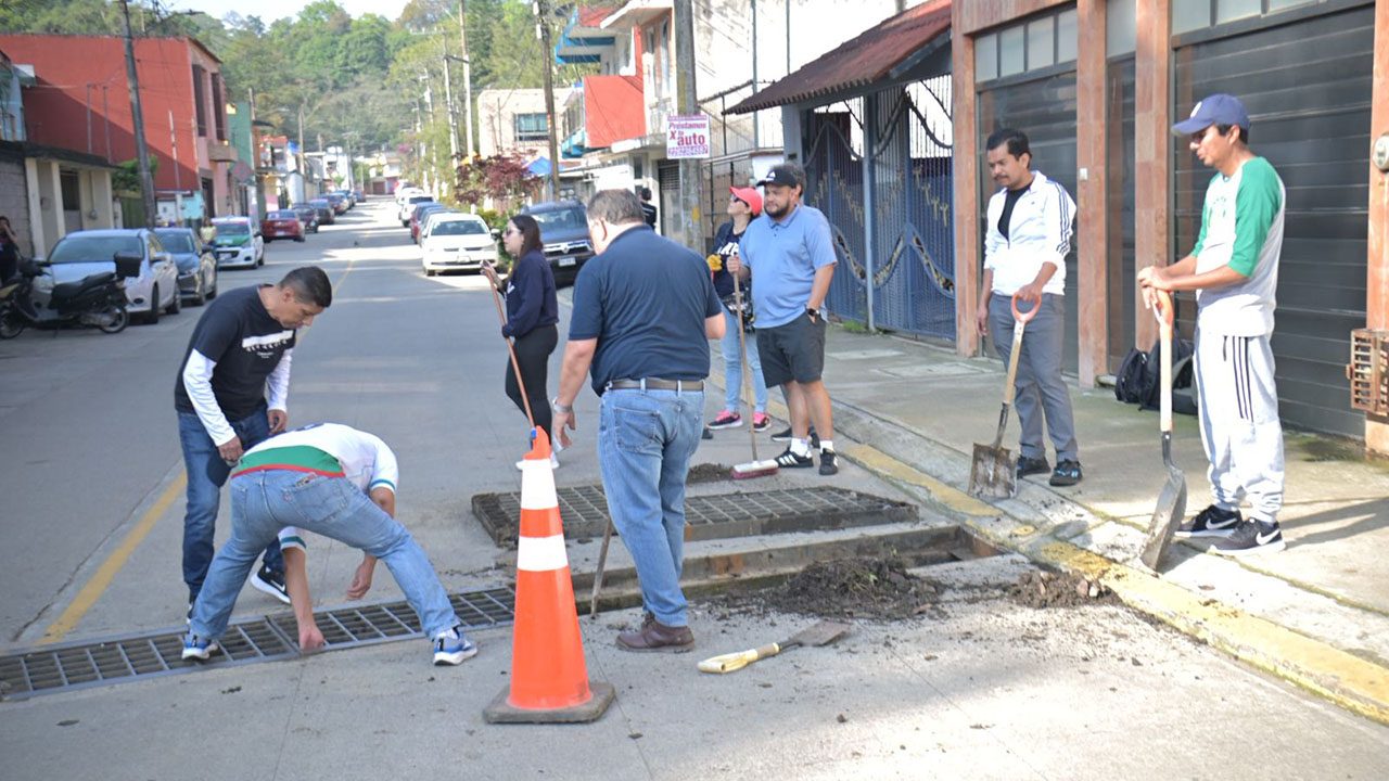 Acompaña por el Síndico Único, Dr. Marco Aurelio Martínez Sánchez, y el Secretario del Ayuntamiento, Mtro. Víctor Hugo Meza Cruz, la Presidenta Municipal dio a conocer que las acciones efectuadas responden a una petición presentada en el Día del Pueblo y con el fin de prevenir riesgos a partir de la limpieza de alcantarillas, registros o tragatormentas.