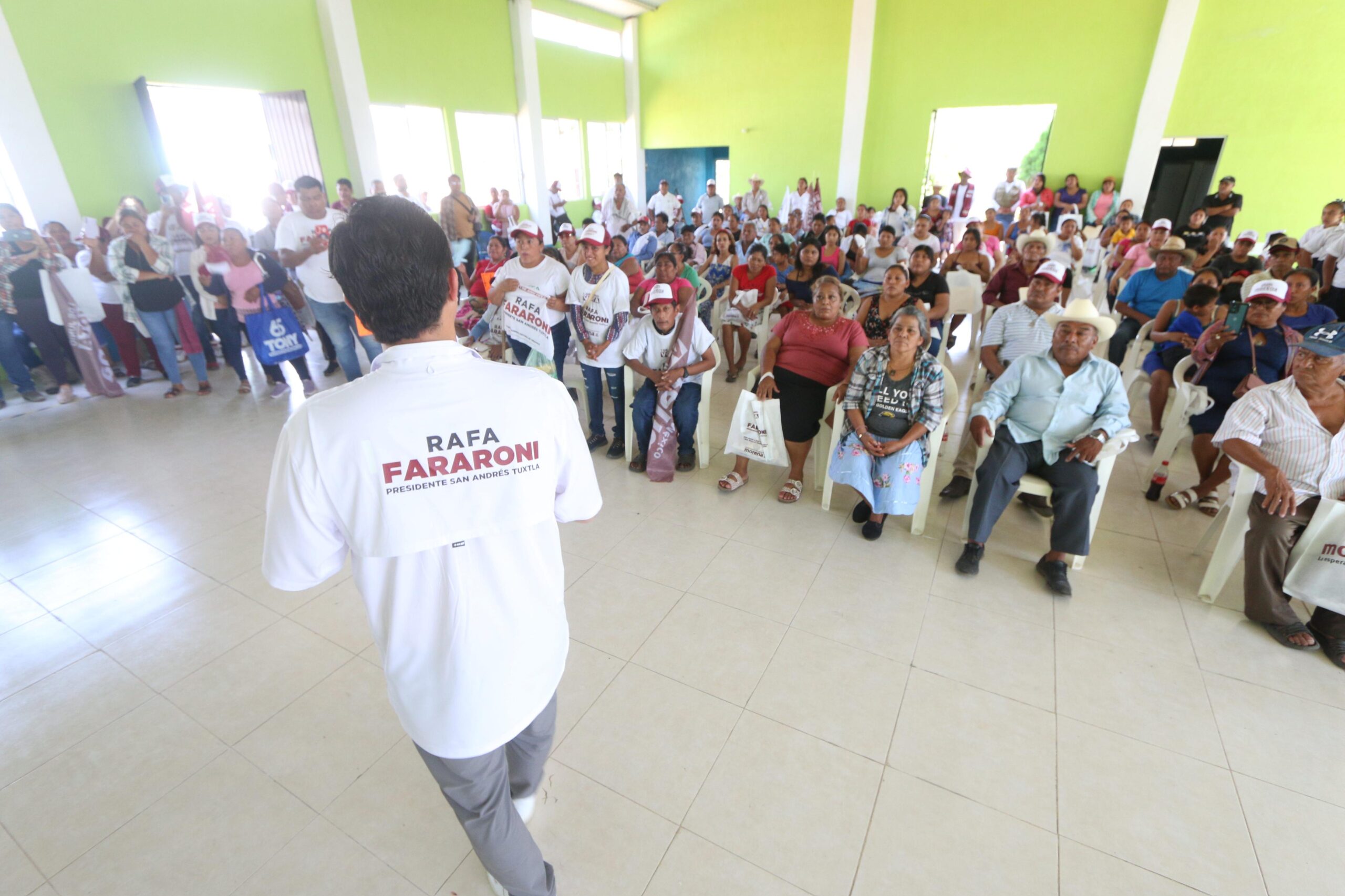 San Andrés Tuxtla, Ver.- El candidato a la alcaldía por San Andrés Tuxtla, Rafa Fararoni arrancó la jornada del noveno día de campaña en la comunidad Apixita y Ohuilapan, donde dialogó con sus habitantes sobre los compromisos de campaña para transformar al municipio de la mano del pueblo.
