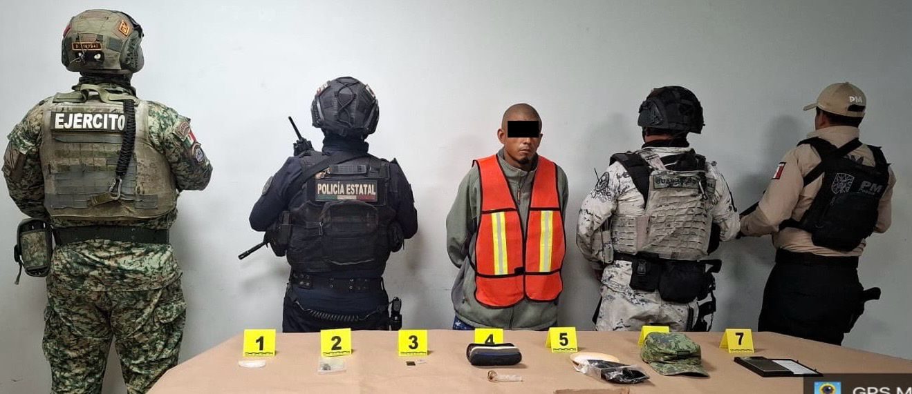 La SSP detuvo a cinco personas, asegurándoles cuatro armas de fuego cortas, dos largas, una hechiza y una réplica, cargadores, cartuchos útiles, 52 dosis y 199 gramos de sustancia con características del cristal, una pipa, celulares; equipamiento táctico y dos camionetas sin reporte de robo.