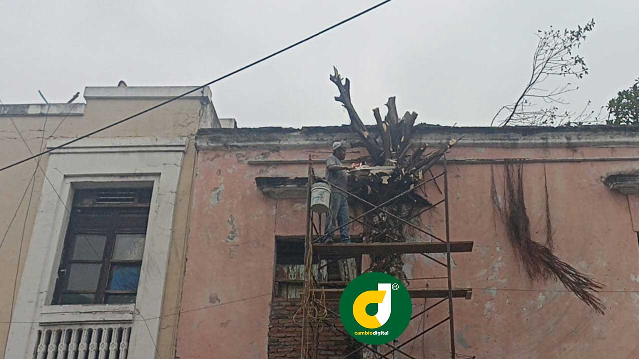 Derriban árbol que creció en parte alta de una vivienda, en el centro de la ciudad