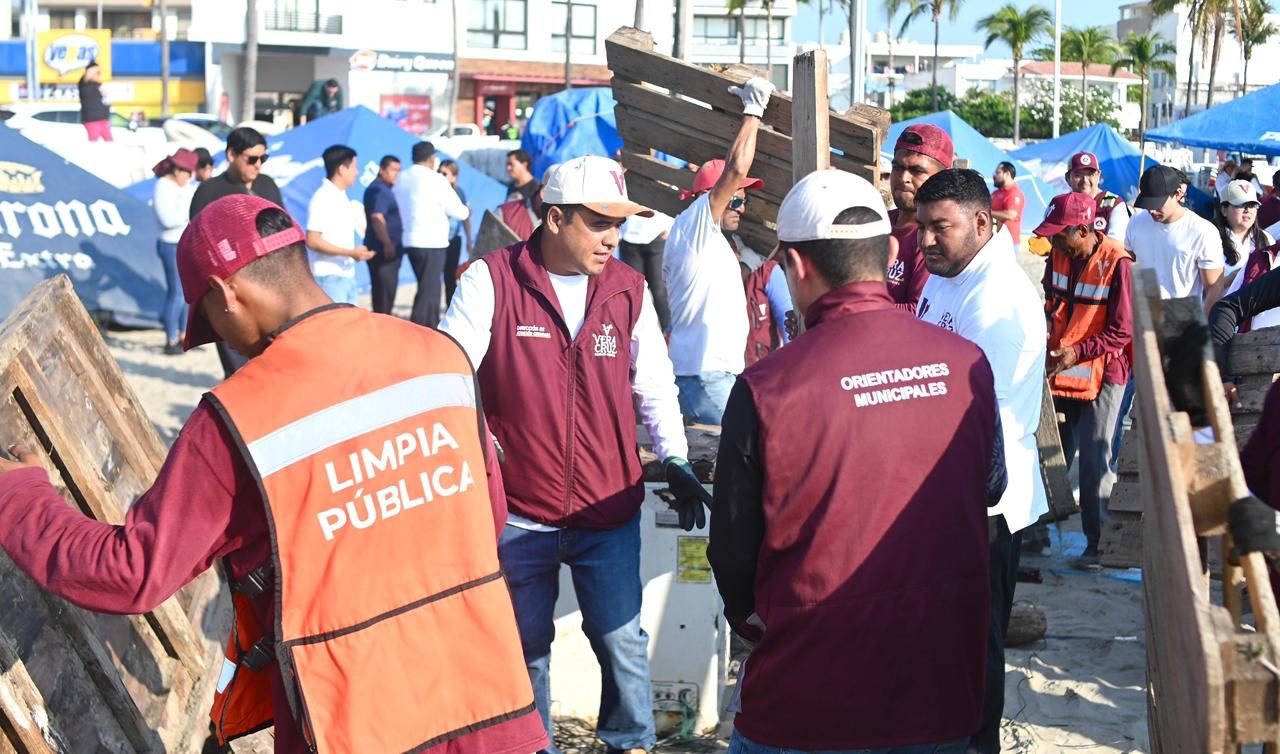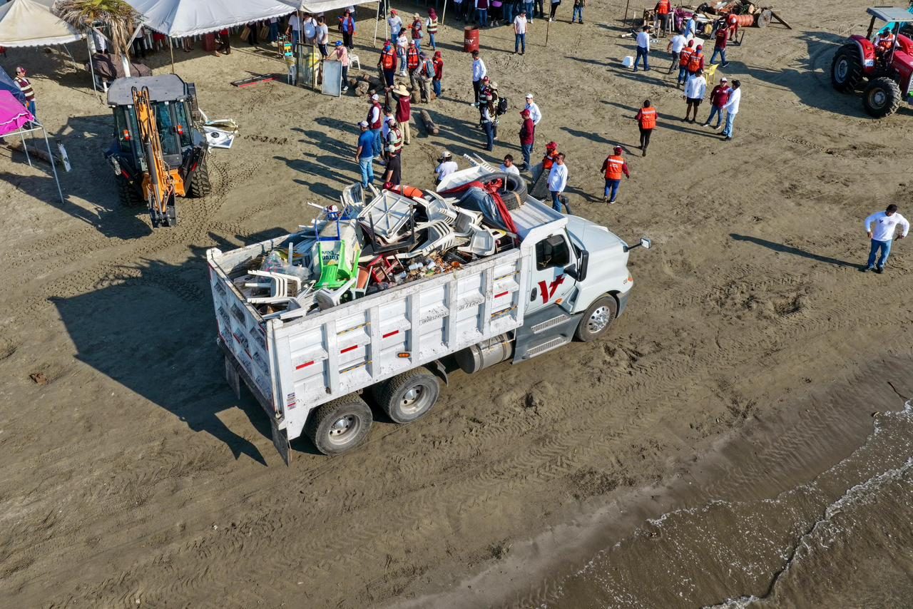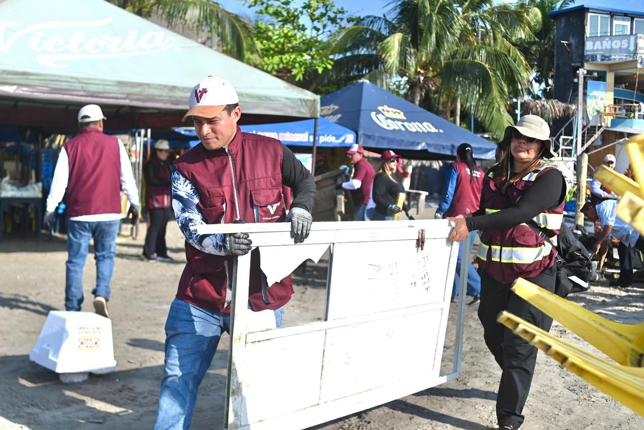 Durante la jornada, brigadas municipales realizaron labores de limpieza y retiro de objetos en desuso, logrando recolectar alrededor de 40 toneladas de desechos. Asimismo, se entregaron botes de basura a palaperos y vendedores del área para garantizar el manejo adecuado de los residuos y contribuir al cuidado de este espacio turístico.
