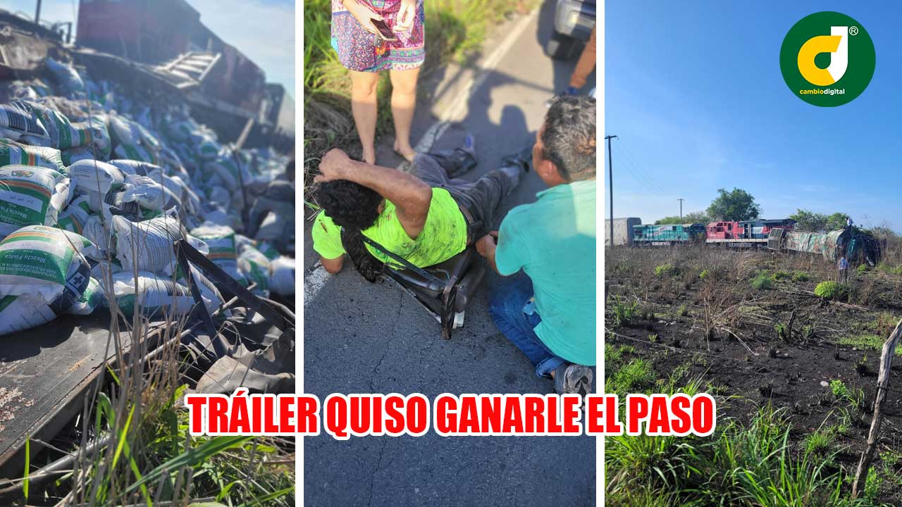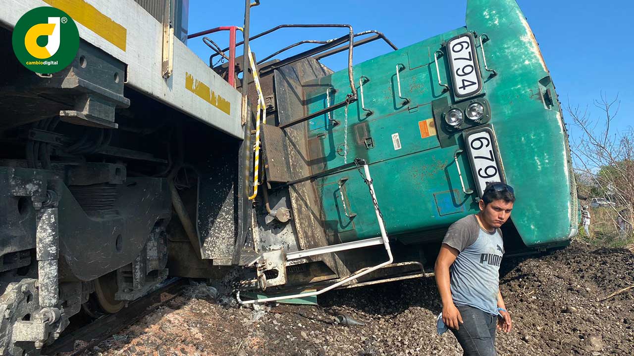 El operador del tractocamión resultó con lesiones menores, mientras que el maquinista de la locomotora solo recibió golpes y el susto por lo ocurrido.
