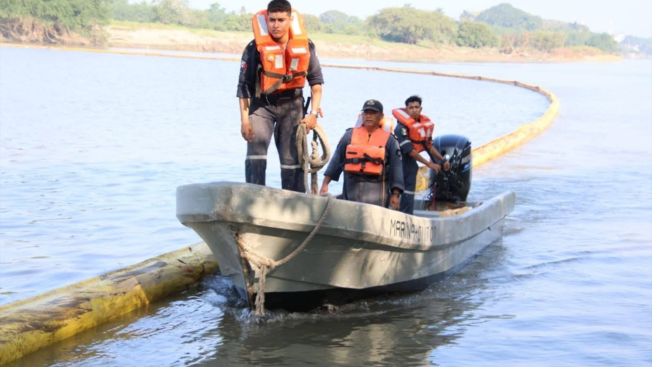 La SEMAR dispuso de un buque de contención, avión, helicóptero, drones, embarcaciones menores, vehículos y equipo especializado, incluyendo barreras de contención y tanques de almacenamiento temporal, para contener la mancha de hidrocarburo, procedente de derrames por fugas de Petróleos Mexicanos.