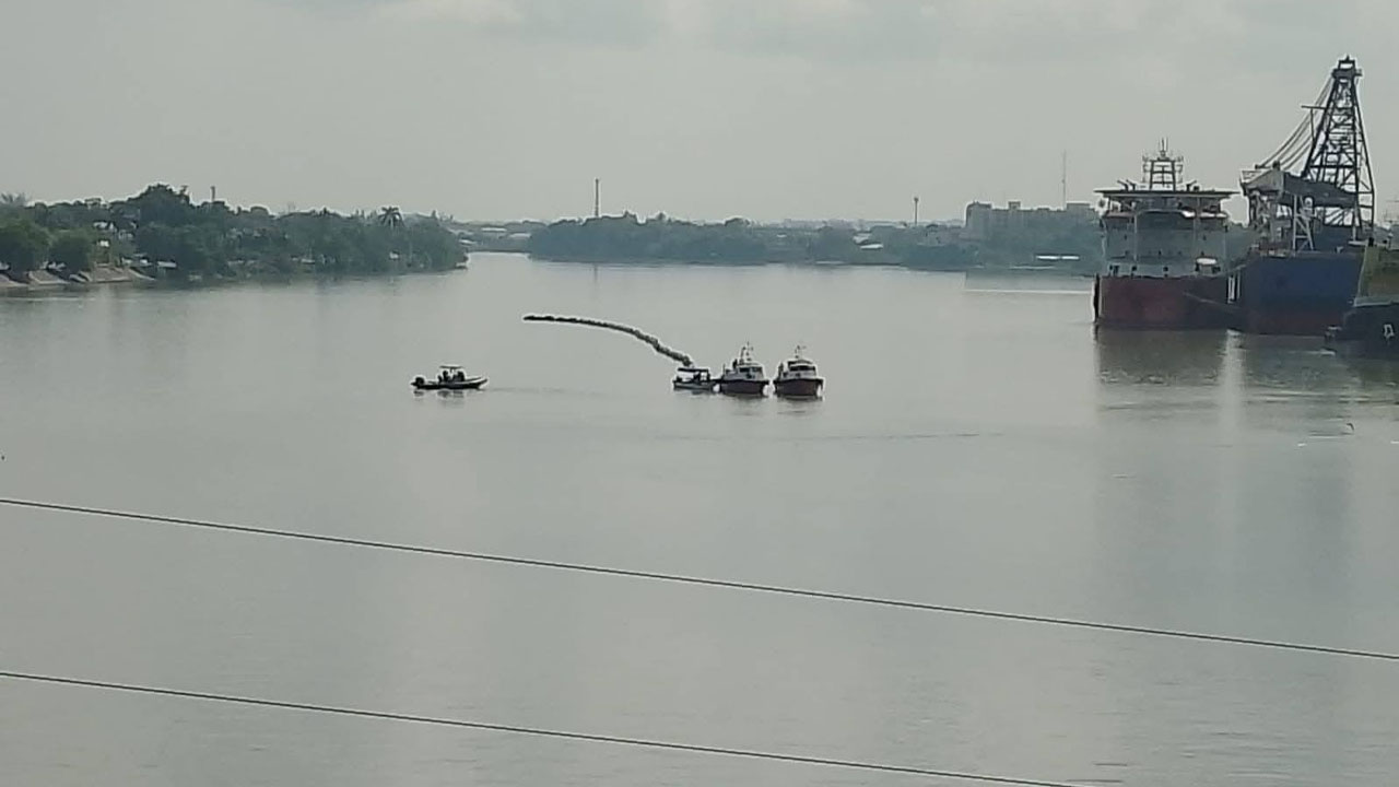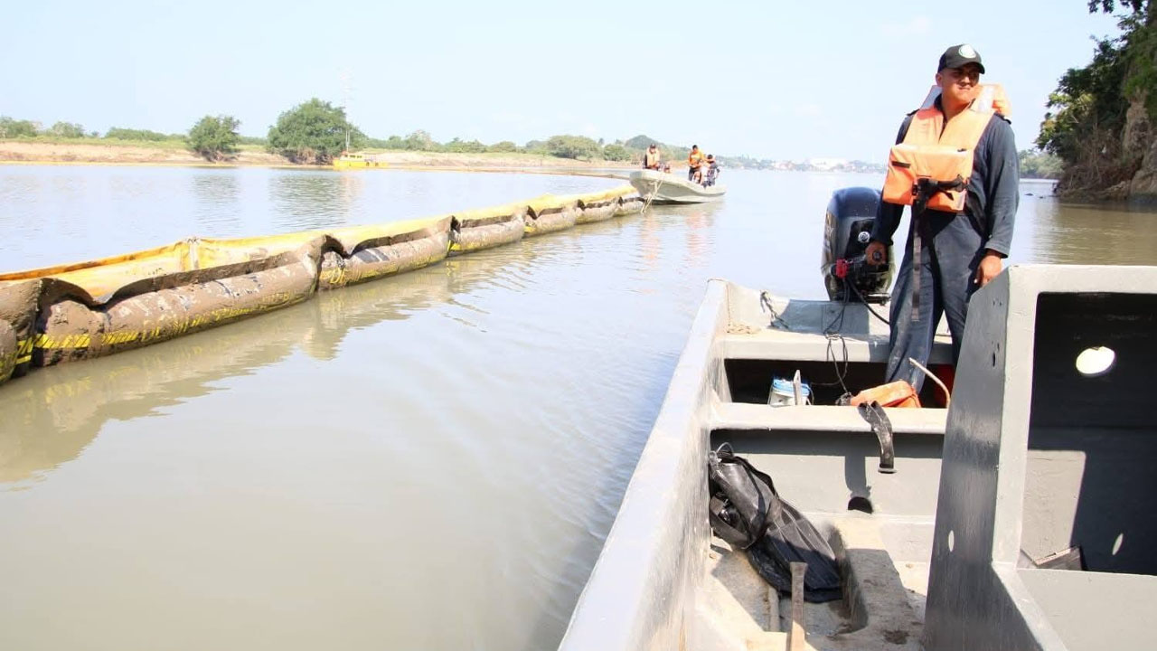 Despliega Marina 300 elementos, buque y equipo, por derrame de combustible en río Tuxpan-Pantepec 📹
