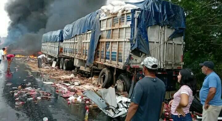 Un tractocamión iba cargado de aceite comestible y el otro con alimento para ganado.