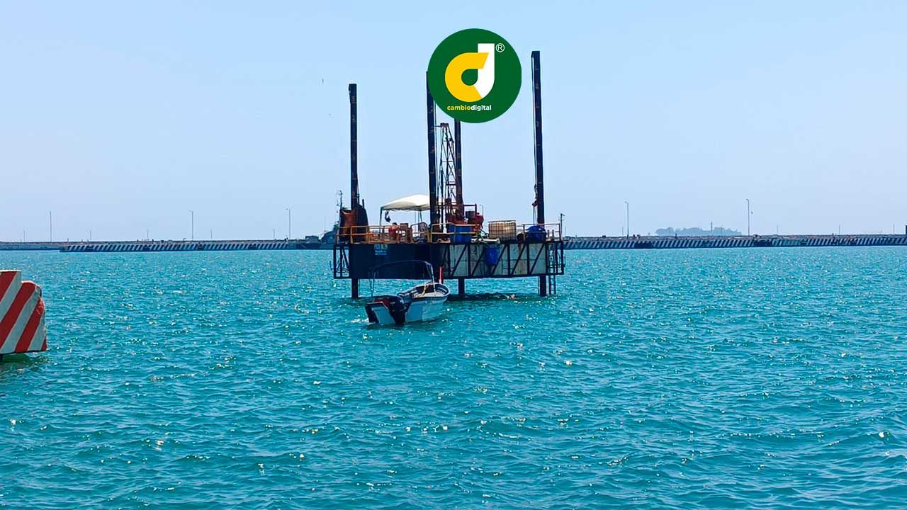 Sobre la estructura autoelevable se observó la presencia de al menos tres trabajadores desempeñando diversas actividades, mientras que una lancha permanecía amarrada a la plataforma metálica.