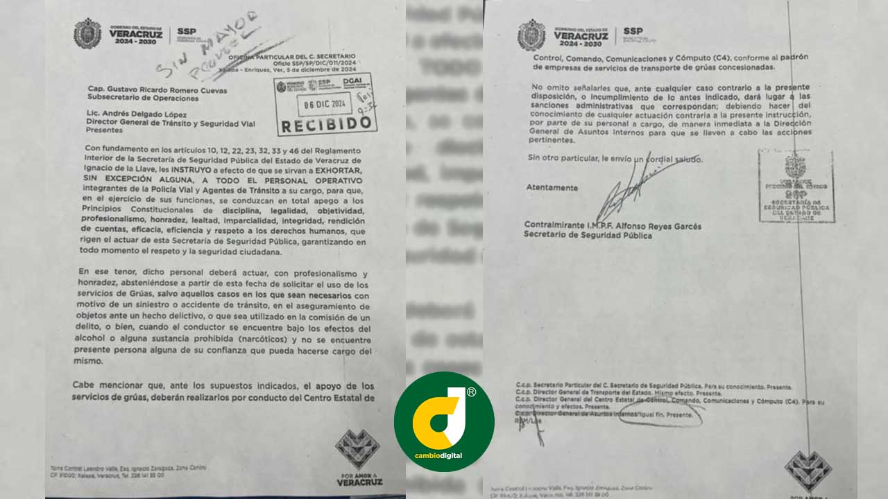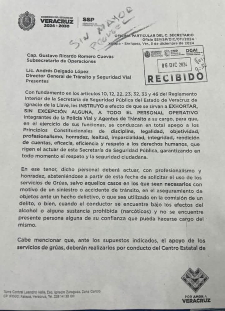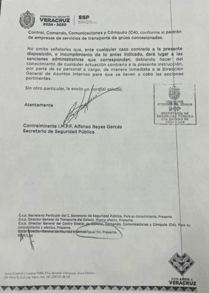 En oficio firmado por el secretario de Seguridad Pública, Alfonso Reyes Garcés, se especifica que no atender dicha orden supondrá intervención de la dirección de Asuntos Internos de la dependencia para lo que en su caso proceda.
