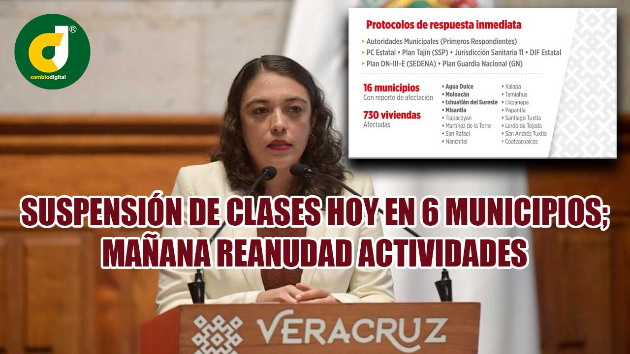 Esta tarde, de forma oficial, finalmente el gobierno estatal determinó la suspensión de clases en seis de los municipios, pero sólo por el día de hoy, ya que mañana se reanudaría las actividades.