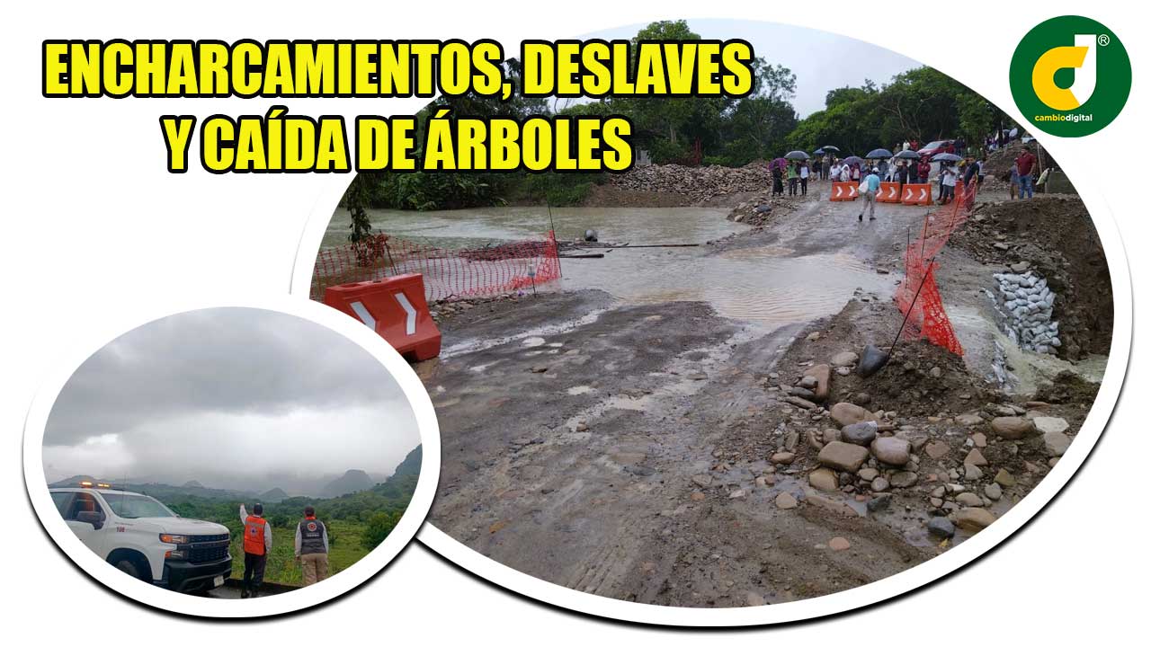 Precisó que se presentaron caídas de árboles, encharcamientos y deslaves, derrumbes de un cerro y una evacuación preventiva por deslizamiento de tierra que ponía en riesgo una vivienda.