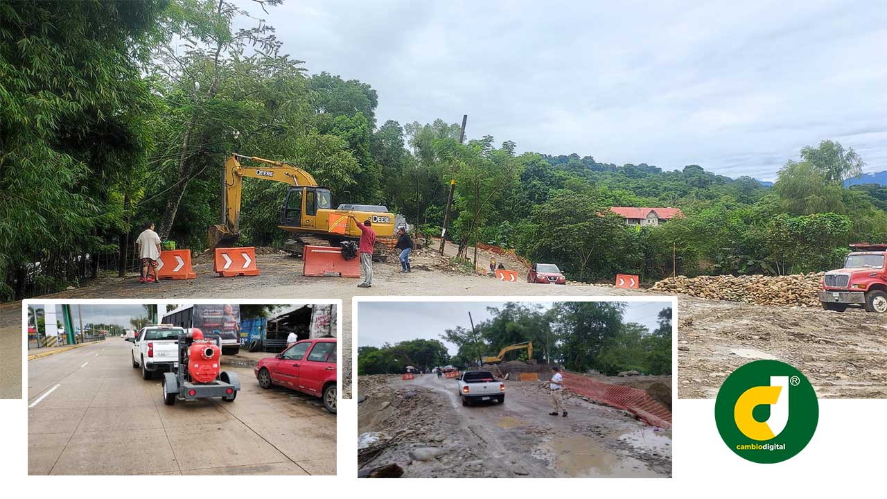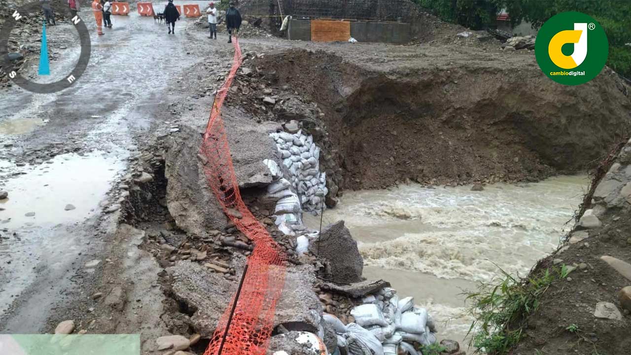 Y es que en ese paso provisional se presentó un deslave de materiales los cuales incluyen lonas de arena, tierra y piedra además de un pequeño colado que ahí se había colocado, de igual forma del lado izquierdo la alcantarilla se encuentra tapada por los desechos que ha arrastrado el agua, palos y basura en su mayoría, así como piedra y tierra.