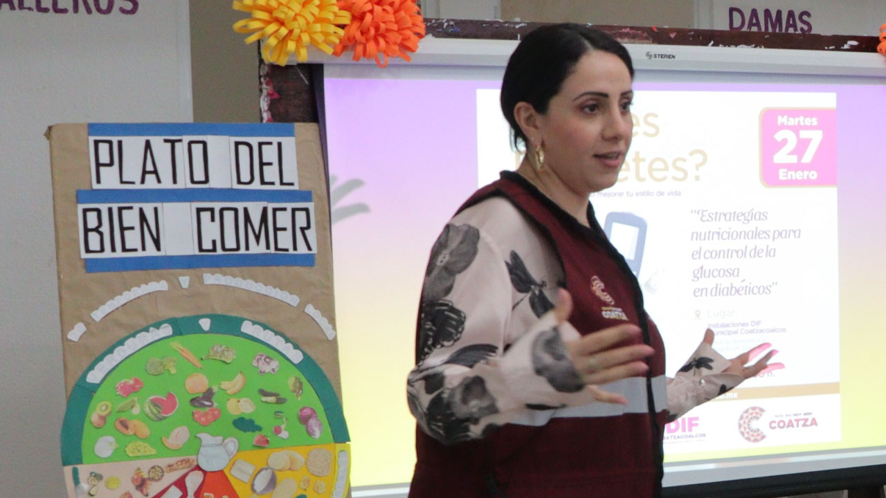 Coatzacoalcos, Ver., 27 de enero de 2026.- Con motivo del Día del Nutriólogo, el DIF Municipal de Coatzacoalcos, que preside Sonia Marie Salvador Goraieb, ofreció la conferencia “Estrategias nutricionales para el control de la glucosa en personas con diabetes”, impartida por el licenciado en nutrición Eduardo Saavedra Ortiz.